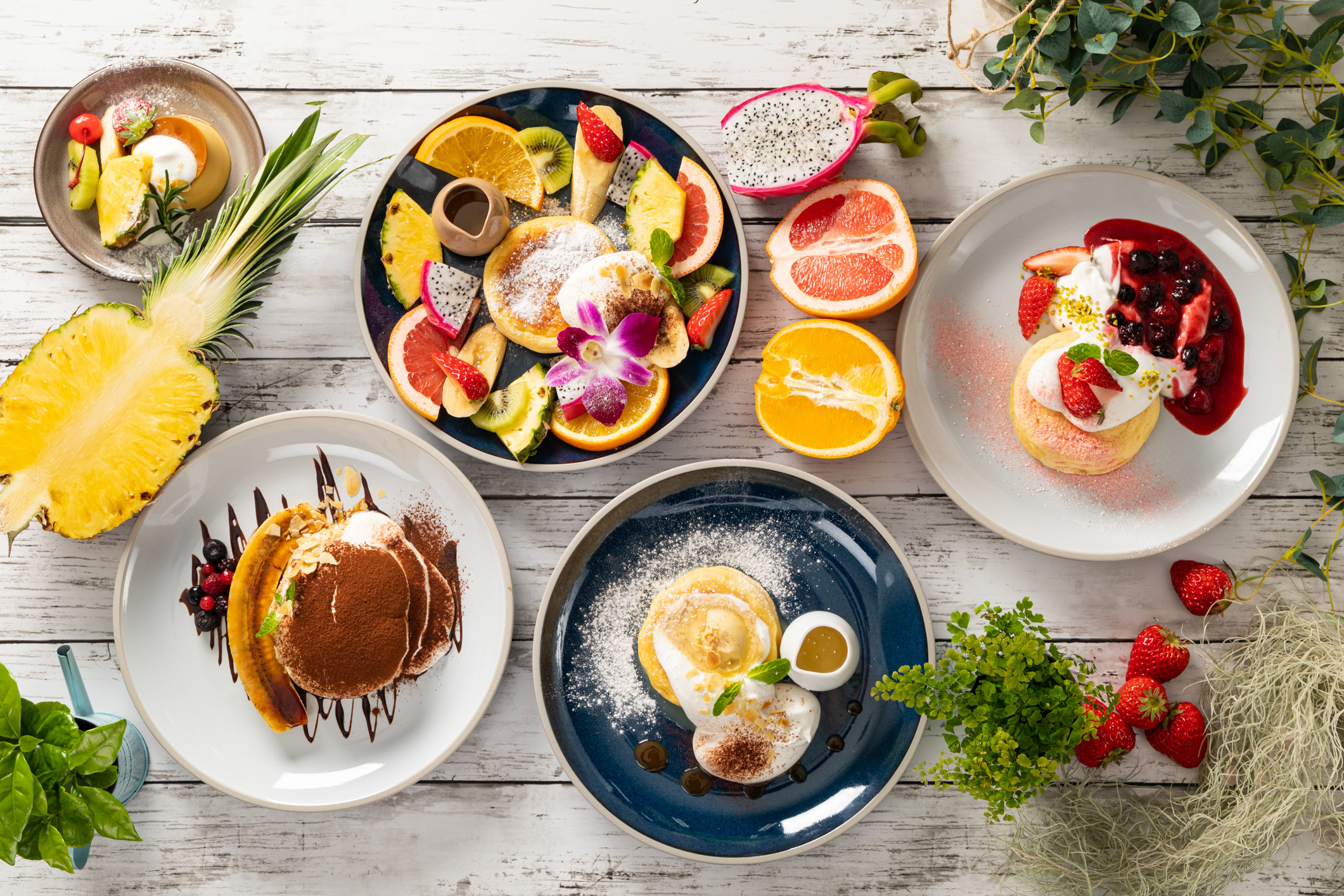 米粉を使用したグルテンフリーのパンケーキ濃厚なオリジナルプリンなどここでしか食べられないオリジナルスイーツをお楽しみ下さい